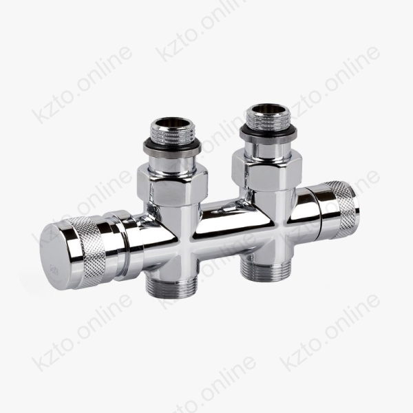 Узел SR Rubinetterie дизайн серия Tondera прямой для нижнего подключения радиаторов: вентиль на подачу ручной регулировки, преобразуемый в термостатический, с механизмом предварительной настройки , запорный клапан. Межосевое расстояние 50 мм, соединение для медных или многослойных труб.
