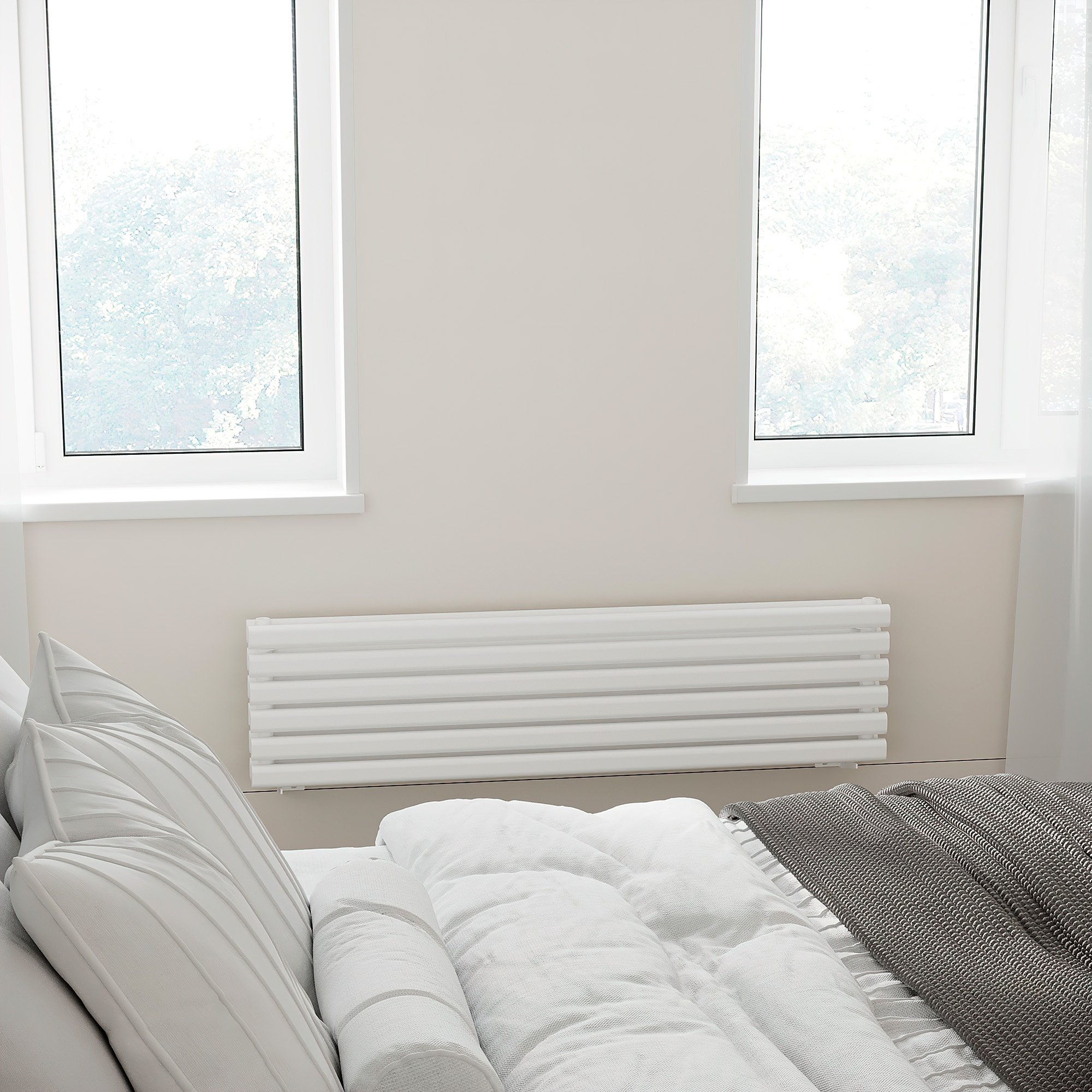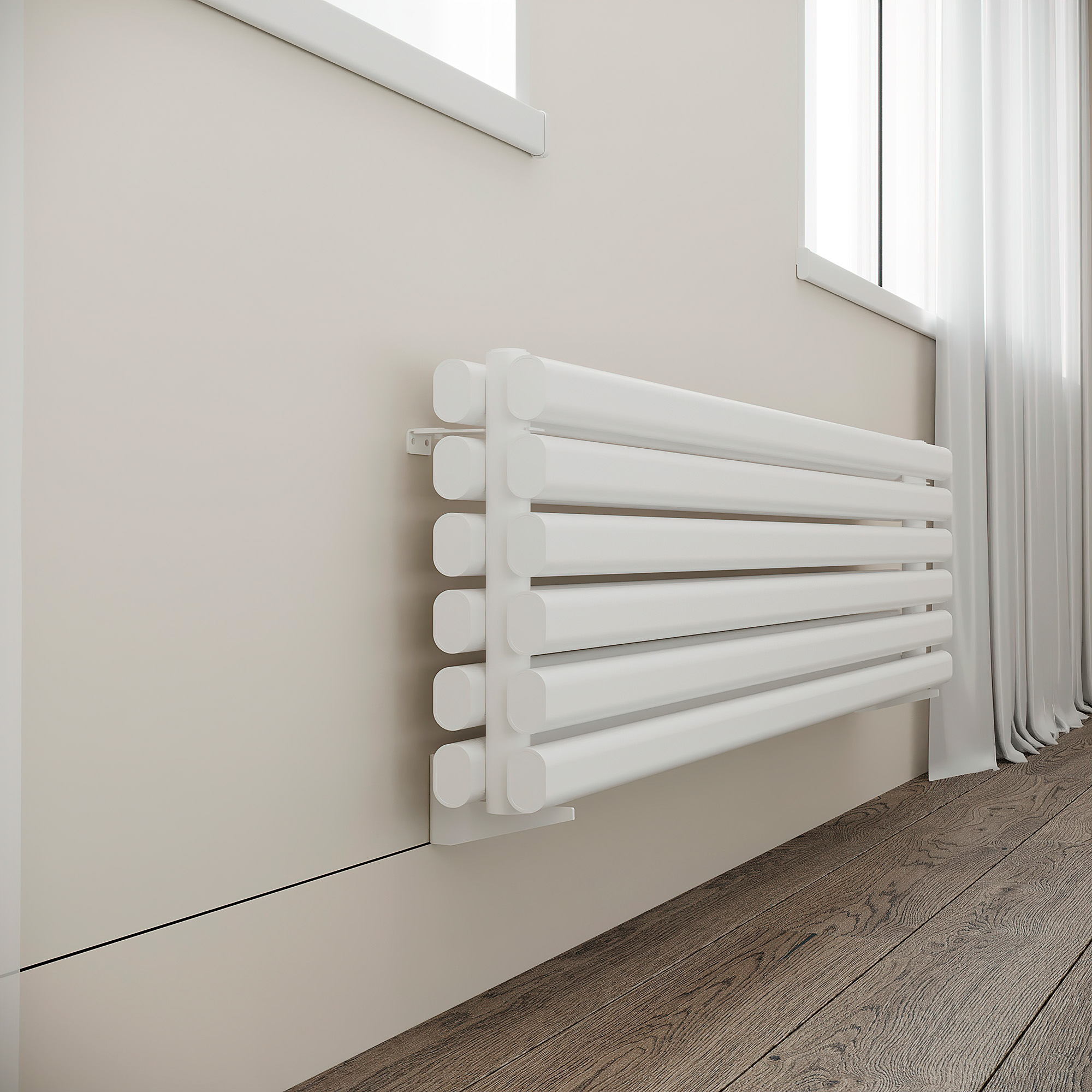 Лаконичные овальные колонки сечением 50х30 располагаются горизонтально в один или два ряда широкой стороной к круглому коллектору