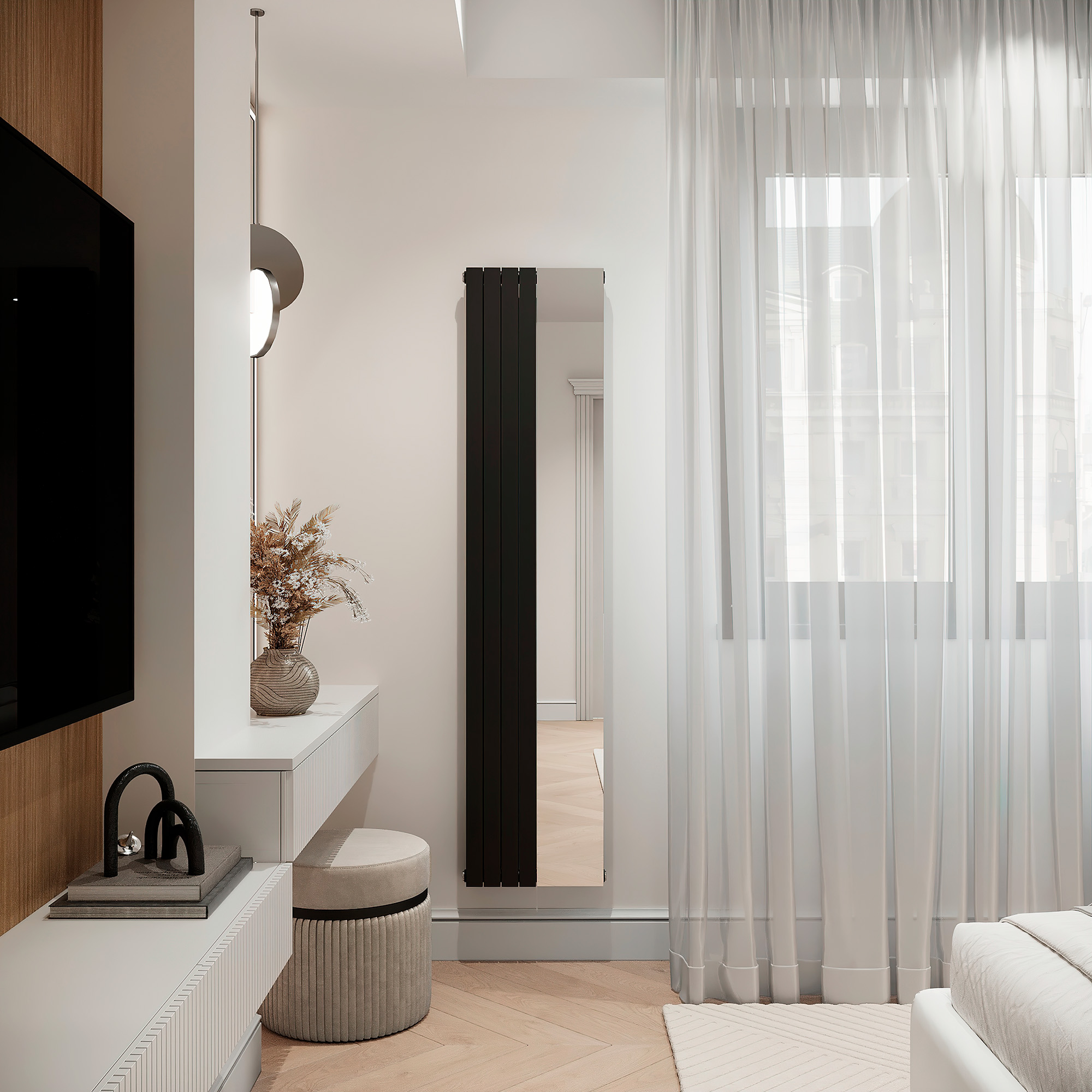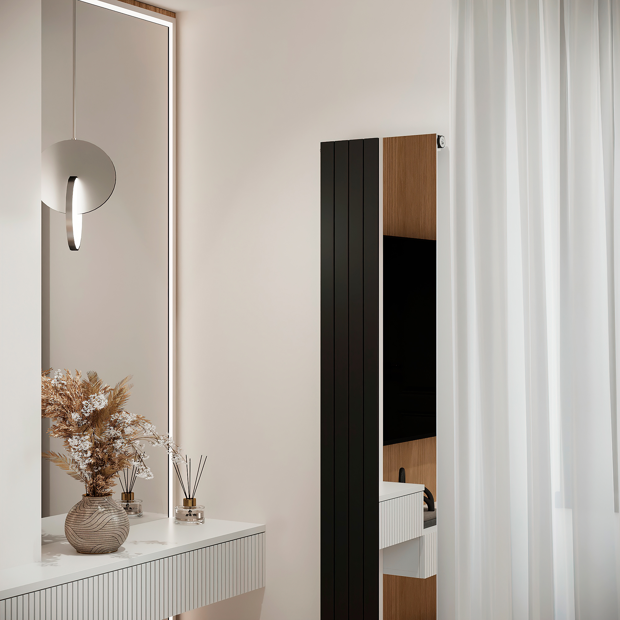 Такие приборы не боятся российских систем отопления, имеют отличную теплоотдачу, при этом Вы получаете 2 элемента интерьера в одном – вертикальный радиатор отопления и вертикальное зеркало в высоту радиатора одновременно.